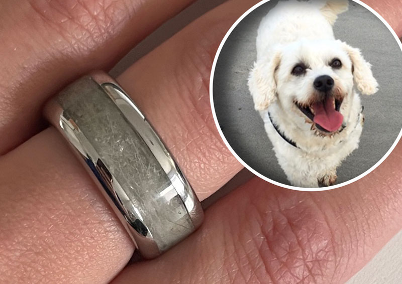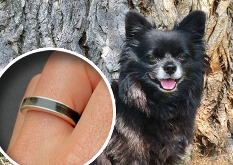 Ring Edelstahl, Hundehaar vergossen, 9 mm breit