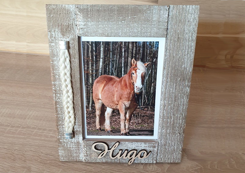 vielen Dank noch einmal für den wunderschönen Bilderrahmen. Ich finde mein Hugo (Shetland Pony) macht sich sehr gut darin.
