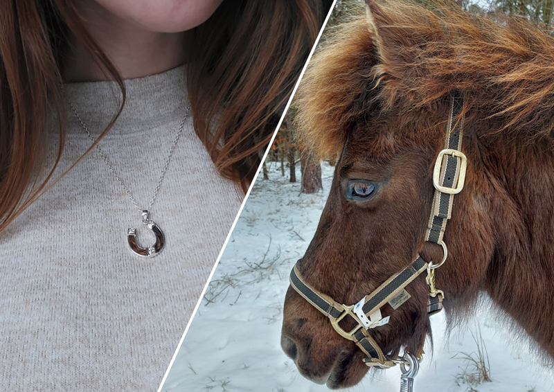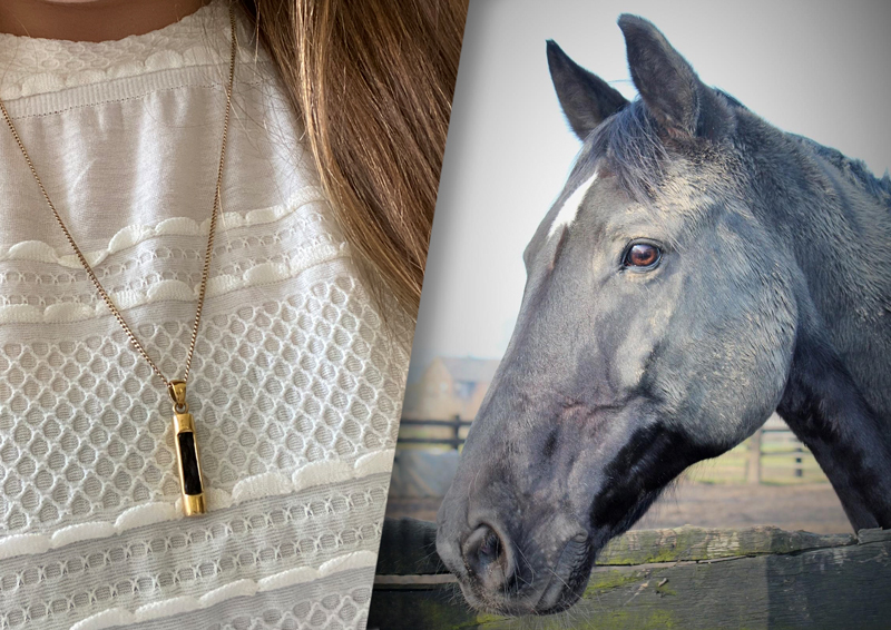 Der Kettenanhänger ist gefüllt mit Haar des Warmblut "Strolch".