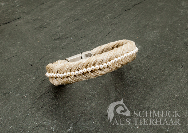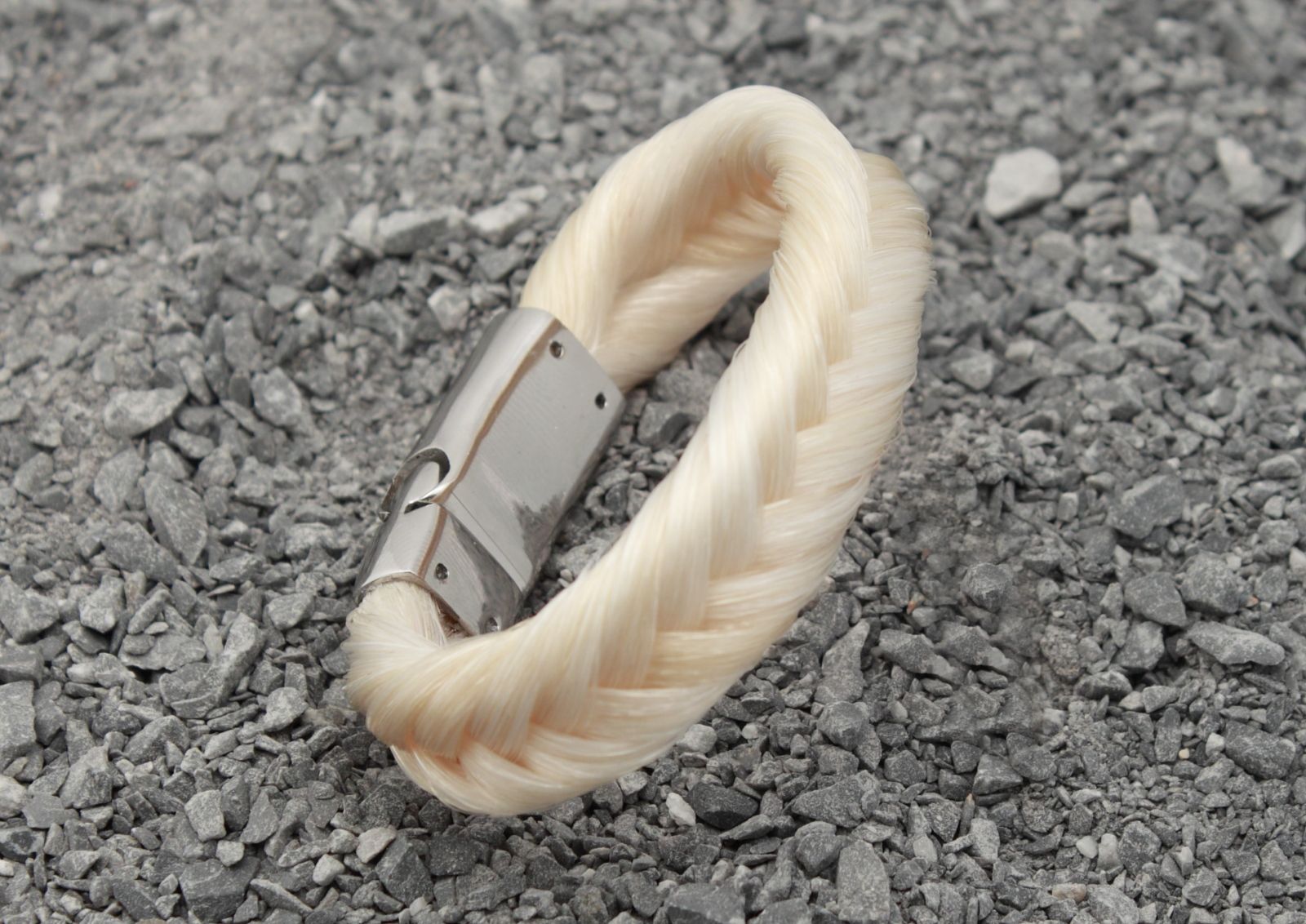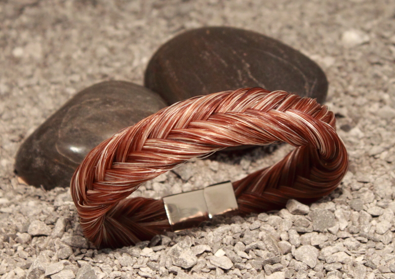 Die Breite der Armbänder kann hier von ca. 1 cm bis ca. 1,5 cm variieren, je nach Geschmack und Menge der Haare.