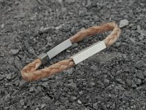 Schmale Armbänder oder Ketten können mit einer runden Edelstahlhülse und Lasergravur verziert werden. Alternativ kann ein Edelstahl-Schild mit Lasergravur (auch Logos oder Fingerabdruck) aufgenäht werden.